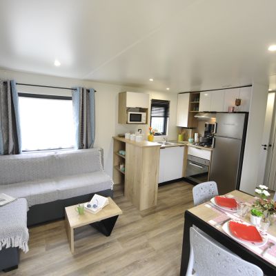Le camping de l'Hermitage vous propose également à la location le confort de ses mobil-homes pour 4, 5 ou 6 personnes, comprenant le stationnement de votre véhicule, l'enlèvement des ordures ménagères, l'électricité et le gaz.